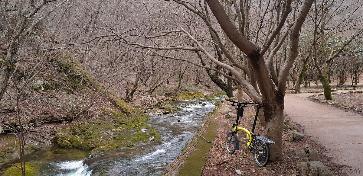 아직 벗꽃이 덜 피어 관광객이 하나도 없다보니, 원적암 앞까지 브롬톤으로 계곡따라 가는데 참으로 한적하고 길이 아름답더군요.