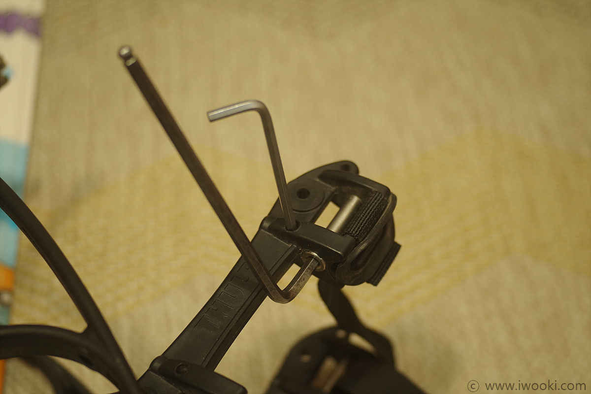그래서 툴레 투어랙의 잠금장치를 해체해보고 대체 공구를 찾아 보았습니다.