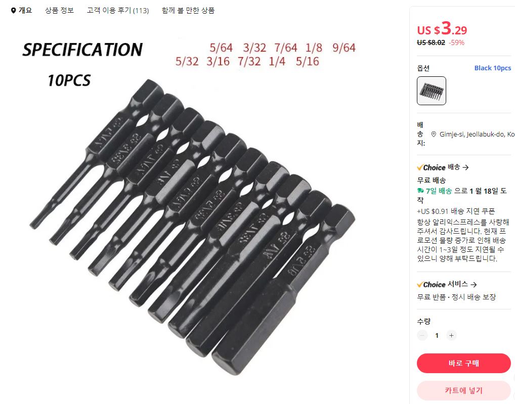 없는 분은 역시나 인치규격 육각렌치도 알리에서 저렴하게 구입가능합니다.