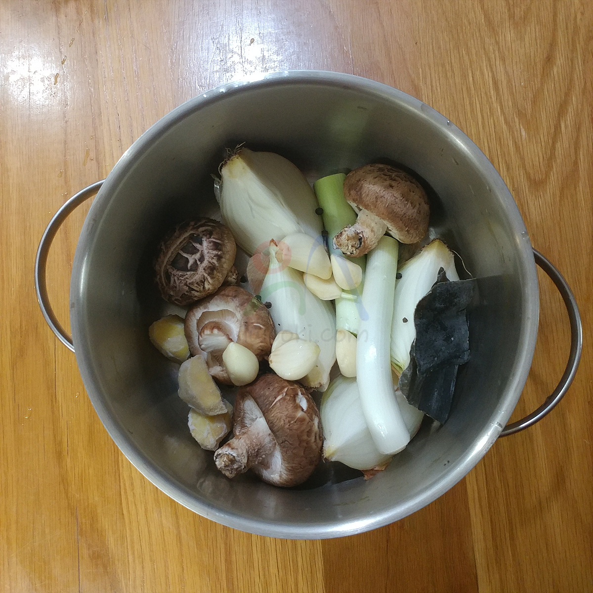 2. 냄비에 육수용 채소를 넣고 팔팔 끓임
