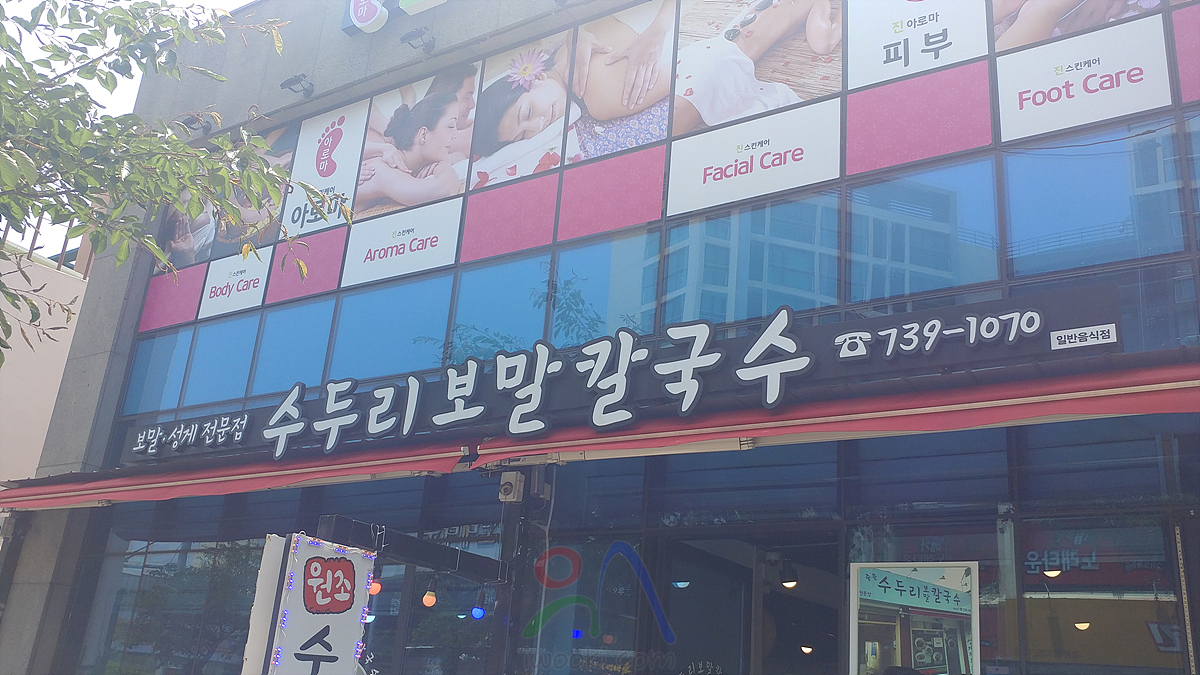 면발은 내가 좋아하는 반죽하여 만든 손칼국수...