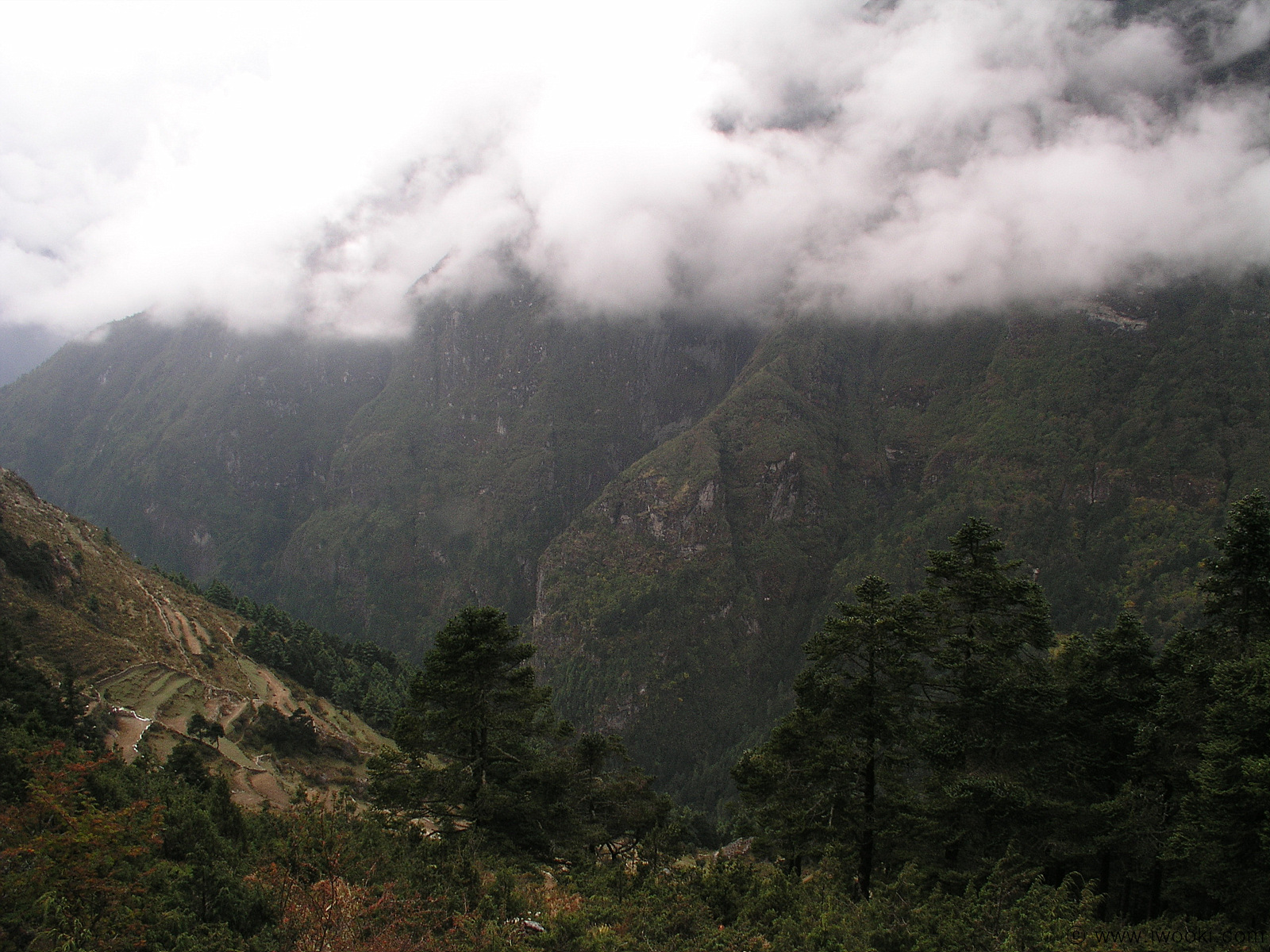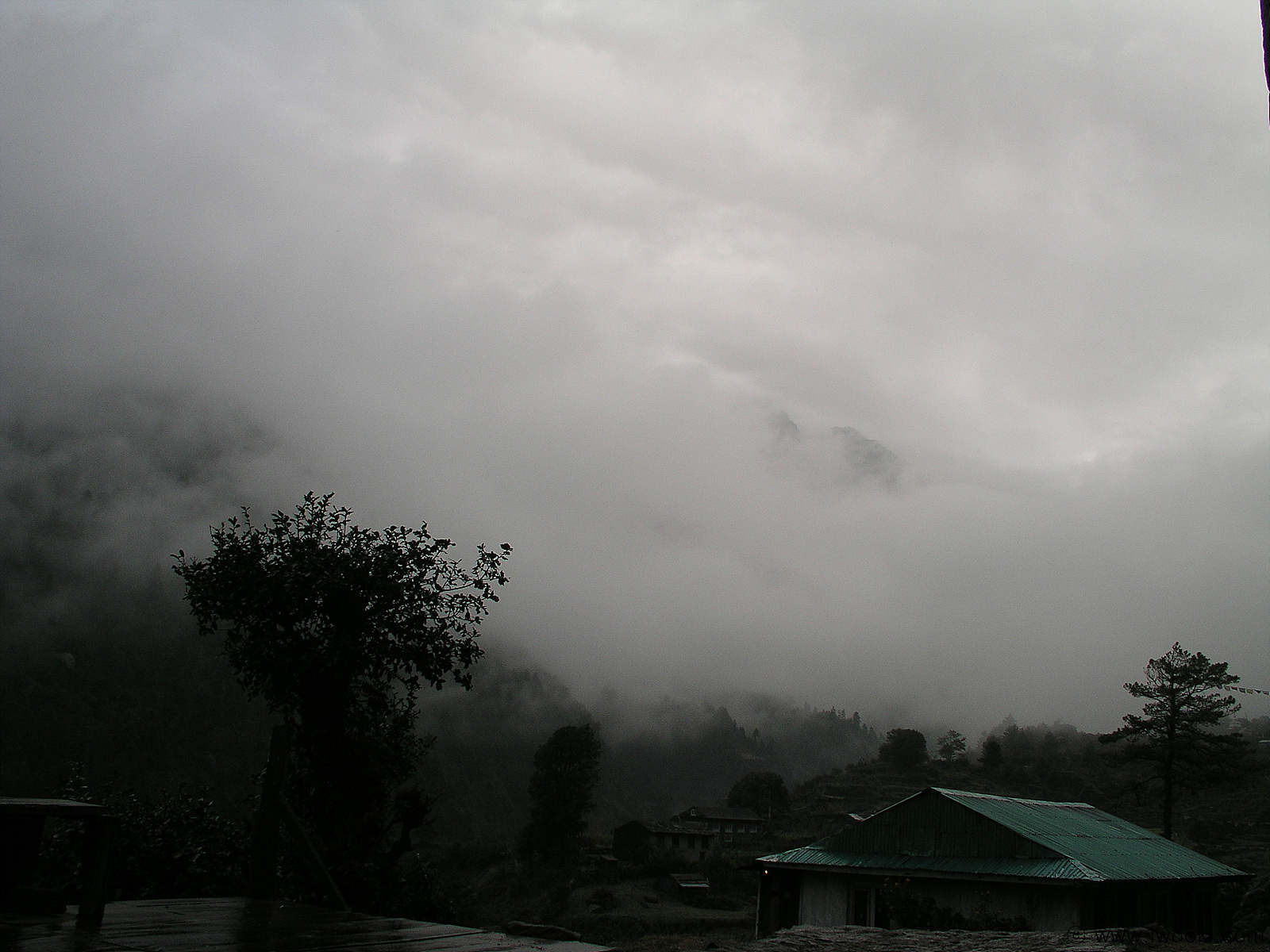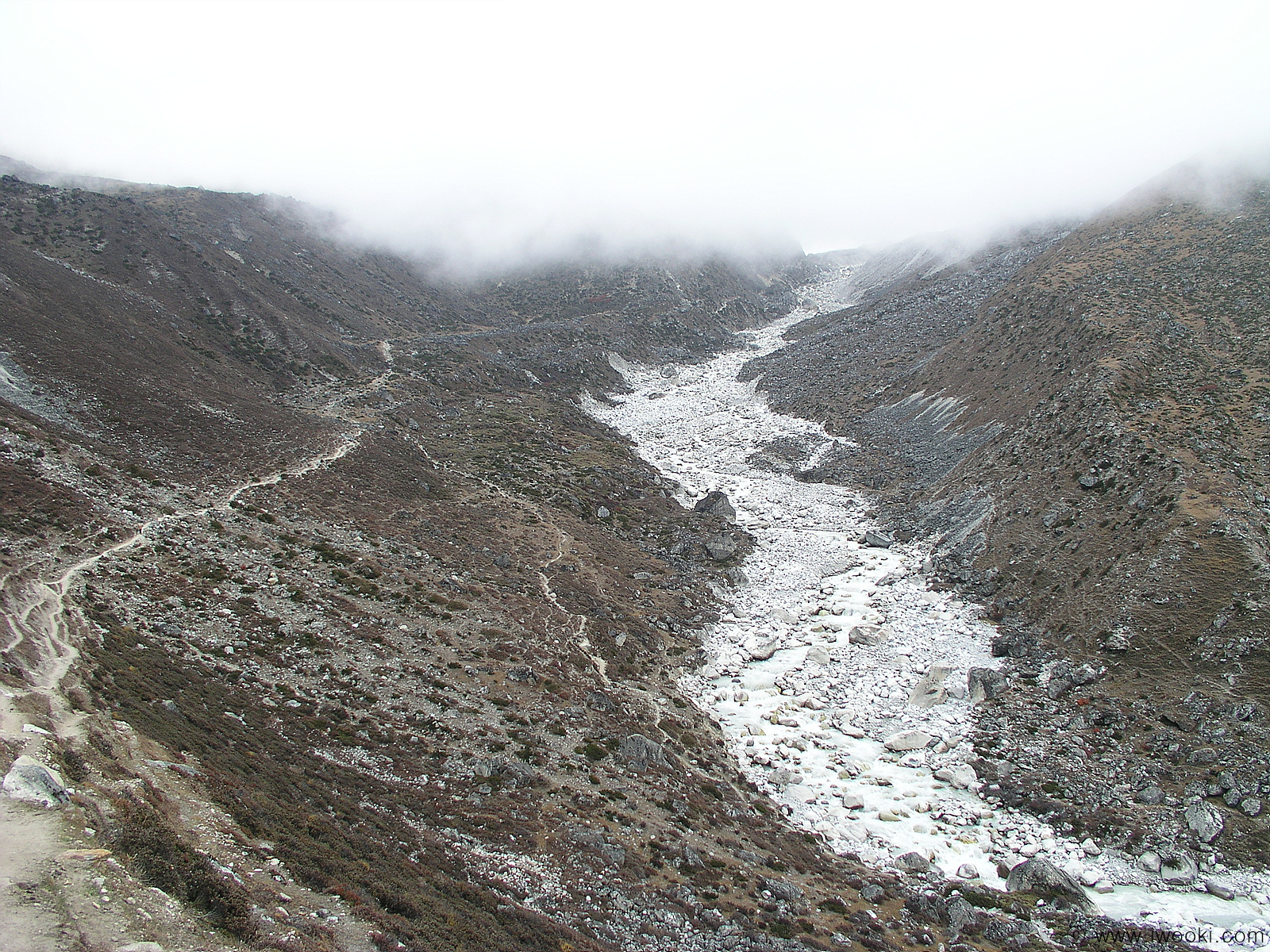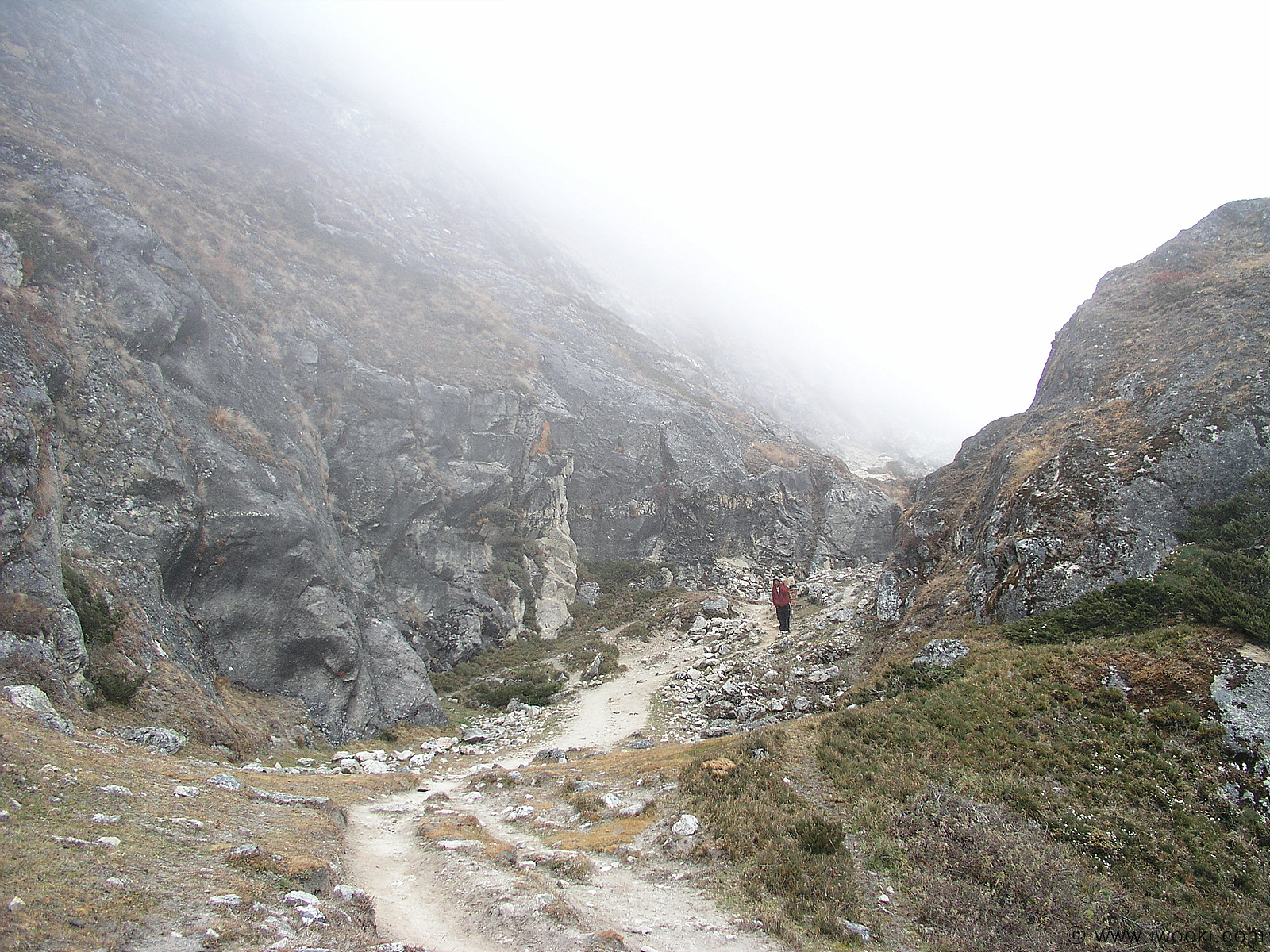 Gokyo에 가까워 지면서 해는 저물고 안개가 가득한데