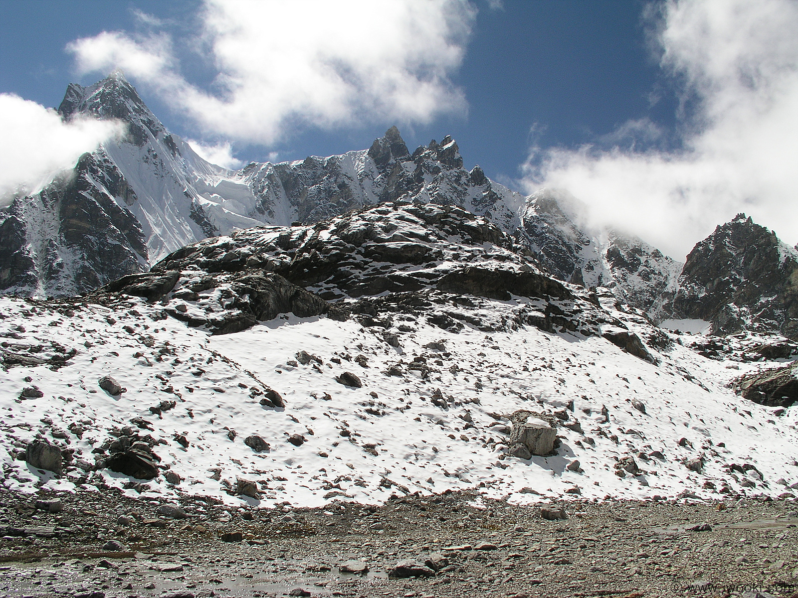 내 생애 가장 높이 오른 고개 Renjo La(높이는 지도마다 차이가 있어서 아마도 5400~5500m ^^)에 올라 다시 내려다 본 Gokyo. 어느새 초모랑마 둘레를 짙게 감싼 구름
