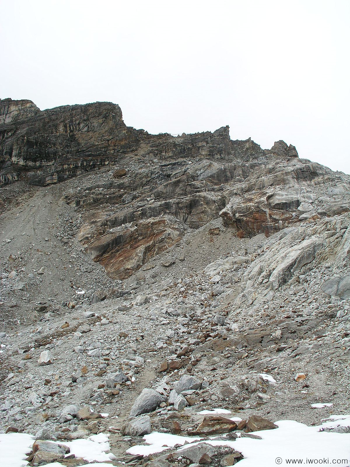 반대편은 눈이 녹지 않아서 발이 푹푹 빠지고, 양말은 다 젖고(내가 착용한 신발은 샌달..하하하), 구름이 고개를 넘지 못해 안개 가득
