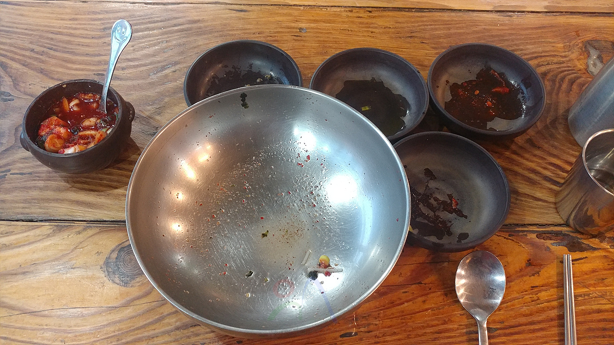 본 요리인 멸치국수와 밑반찬도 훌륭함.