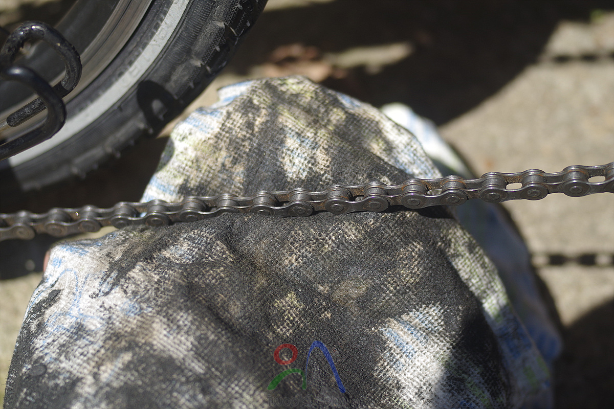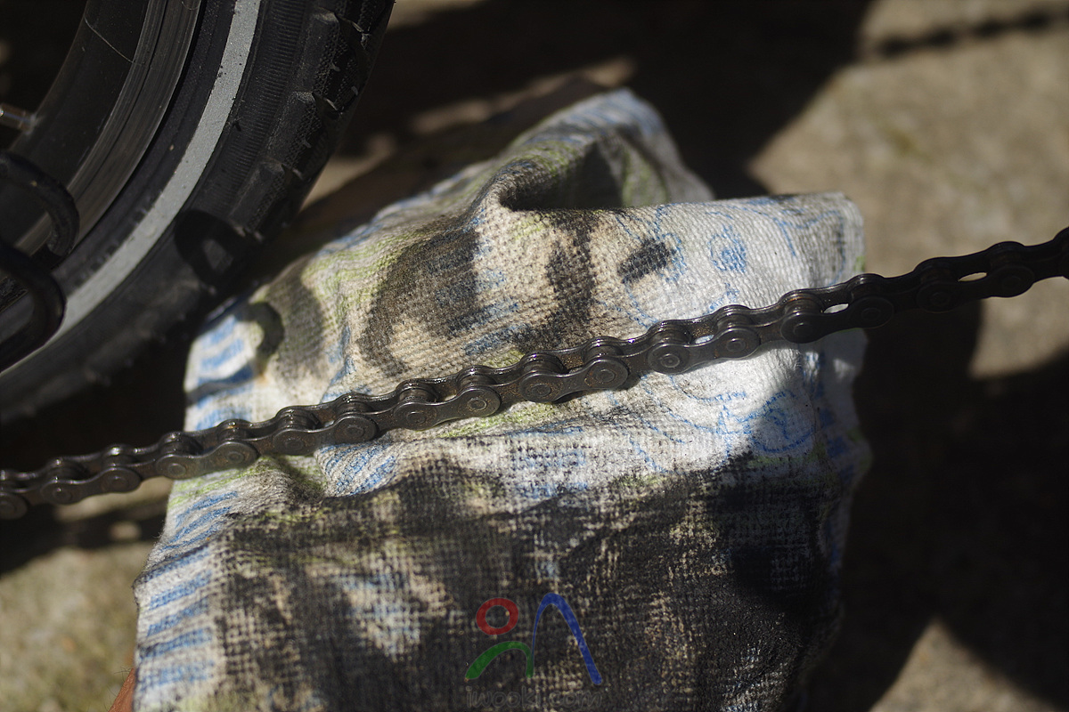 체인 겉에 묻은 기름을 열심히 닦아 주어야 체인에 먼지나 이물질이 안 달라 붙음.