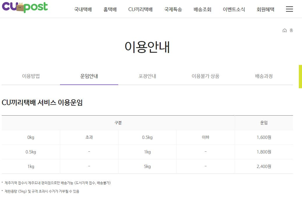◆ 편의점 택배 (CU나 GS25) - 700g 이하 가벼운 물건 제외하고