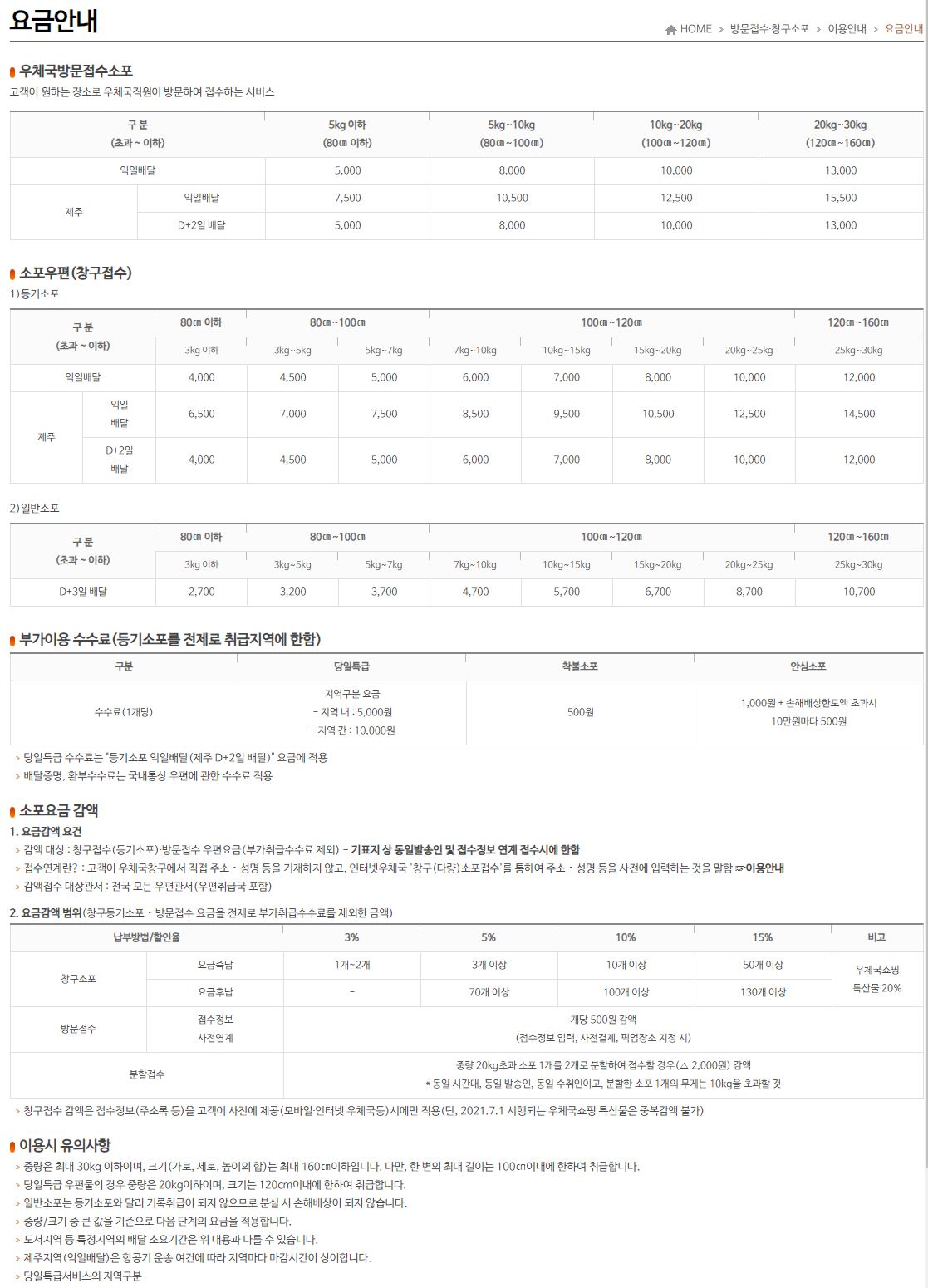 요금대동소이 - 500g 넘어가면 타권 기준 우체국보다 비쌈