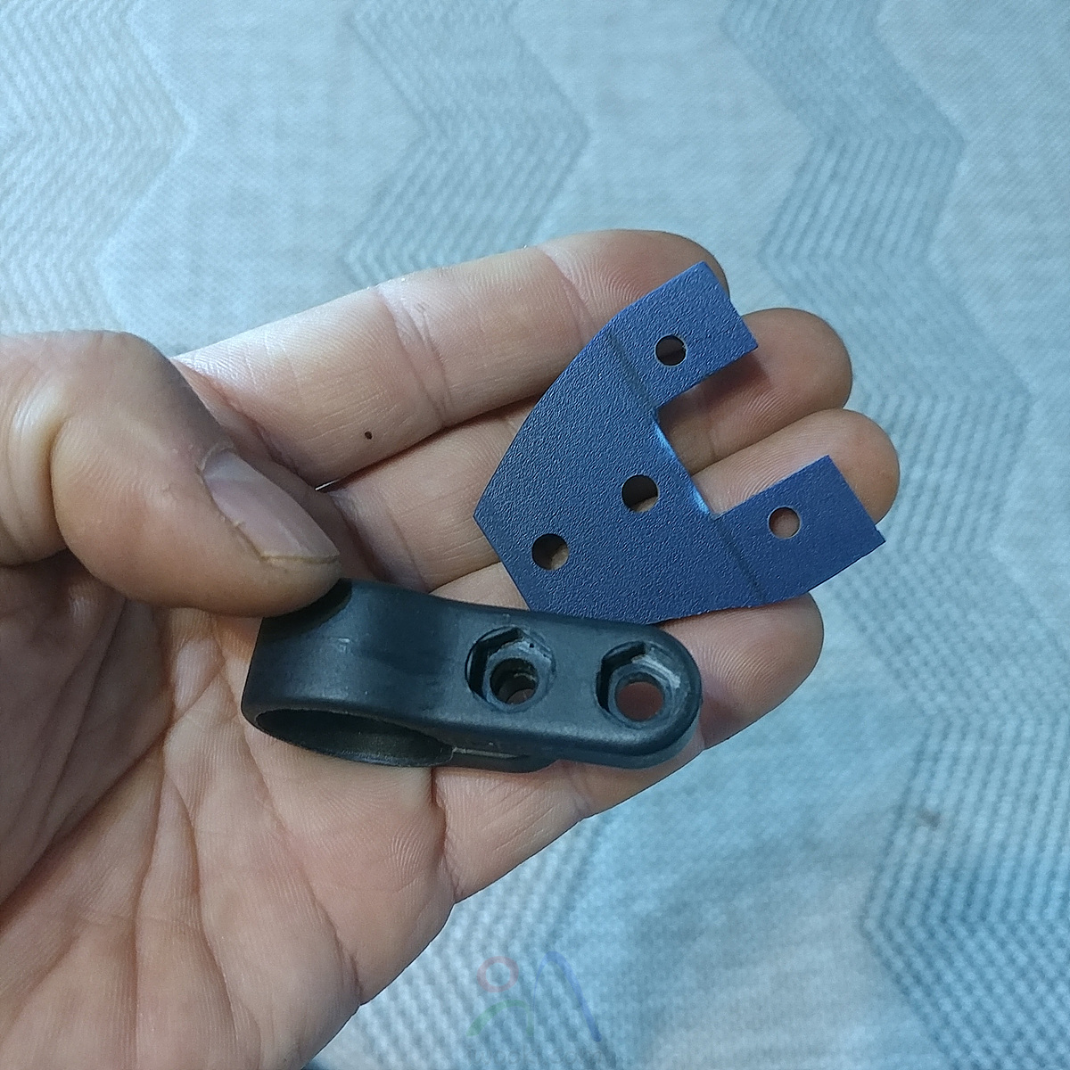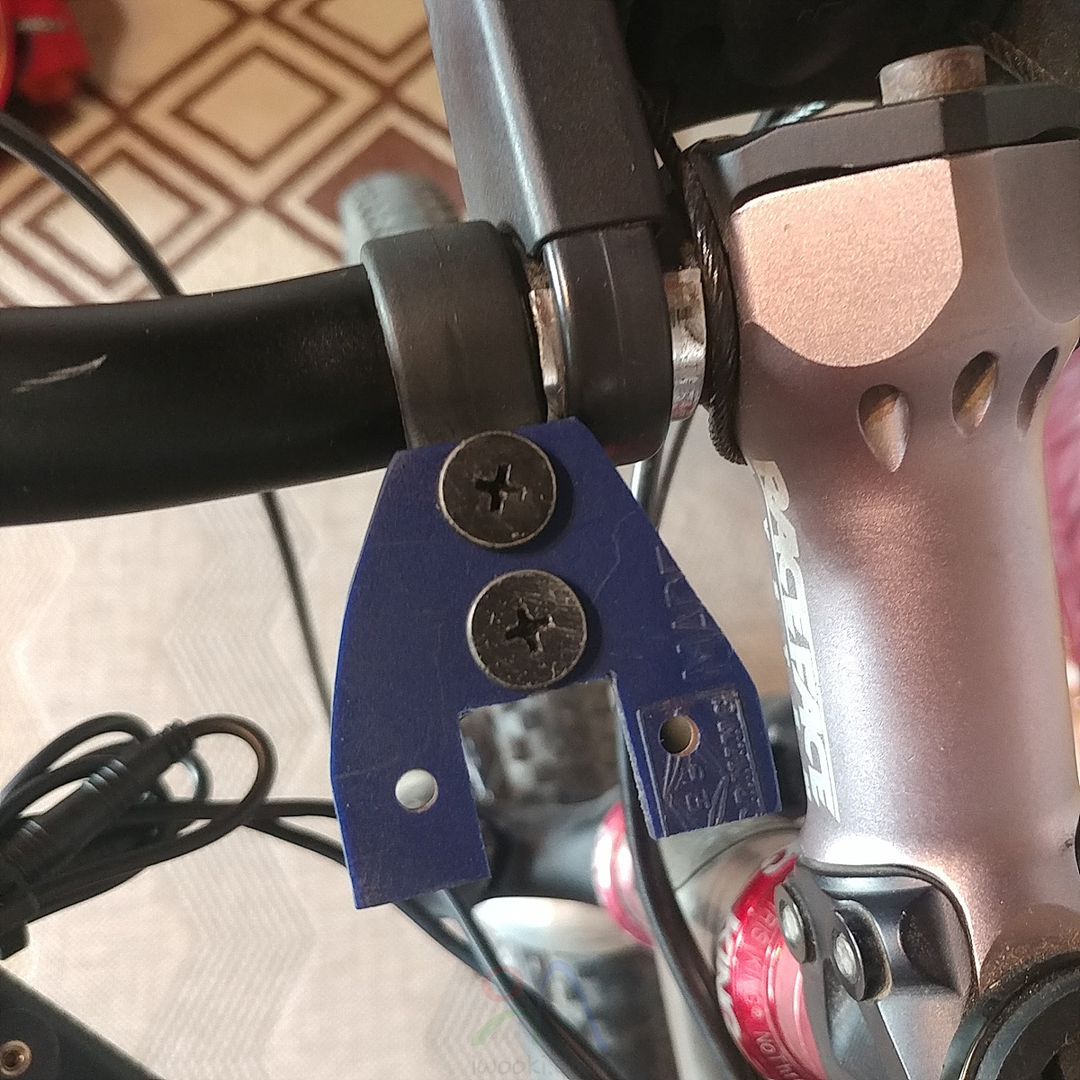 둘다 한 핸들바에 설치하기 위해서 안쓰는 자전거 반사판 클램프와 플라스틱 조각을 자르고, 구멍 뚷고 뚝딱 뚝딱 만듬
