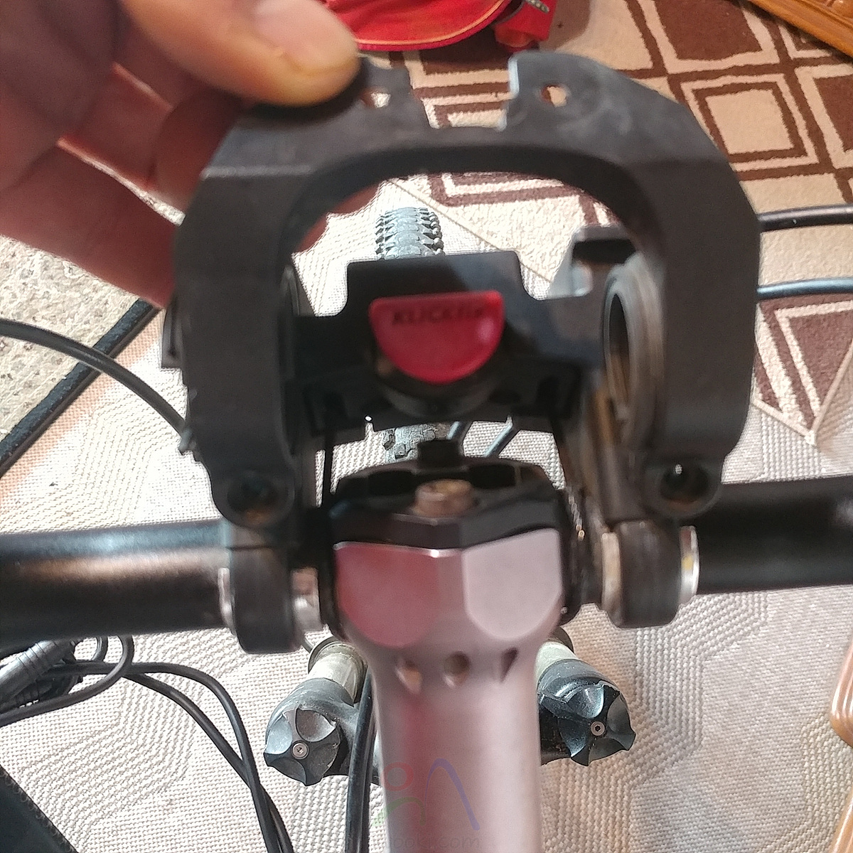 전기 자전거의 디스플레이가 기존 클릭픽스 핸들바 어댑터와 겹침