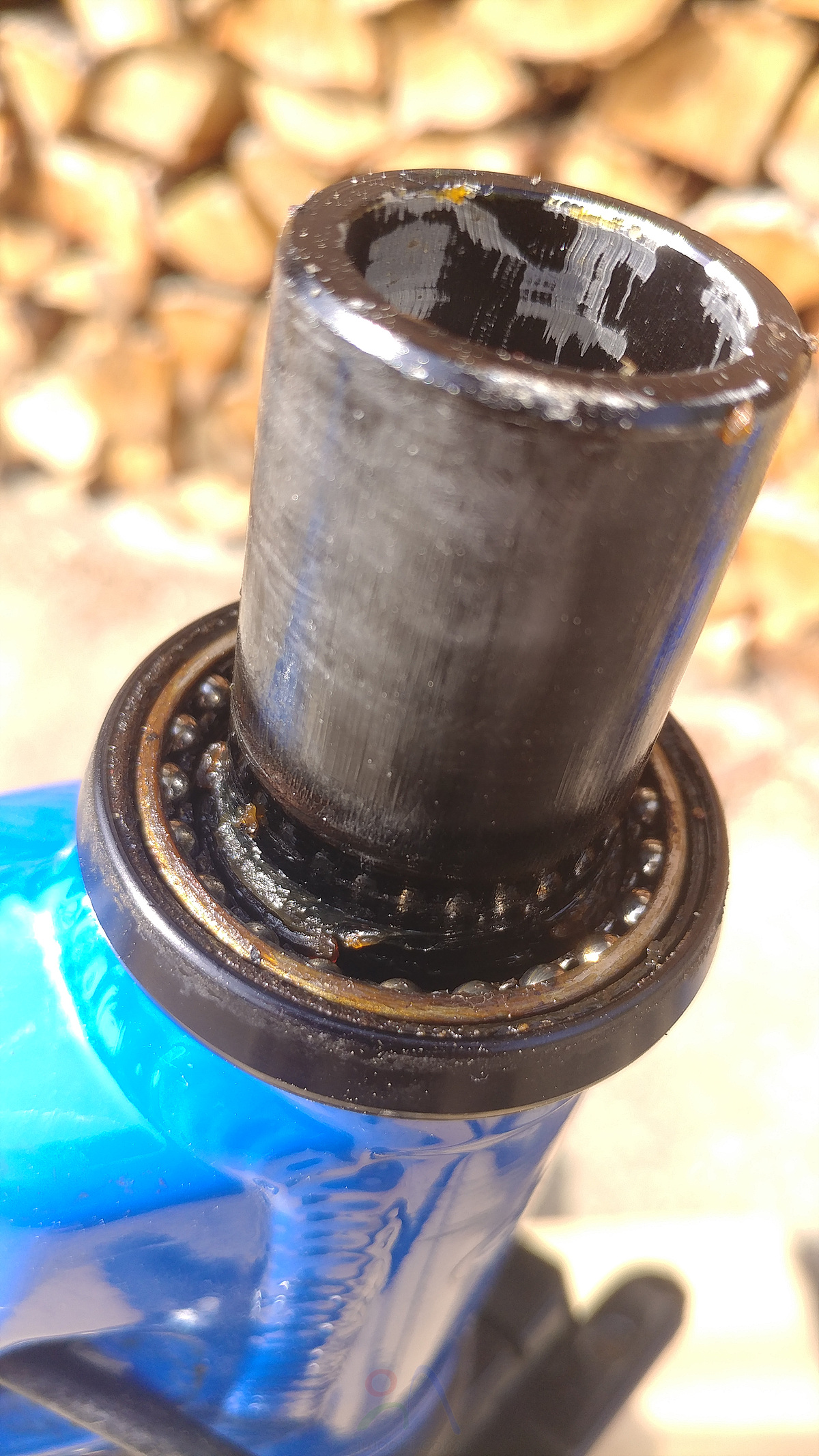 핸들포스트와 포크 연결 볼트 풀어주기