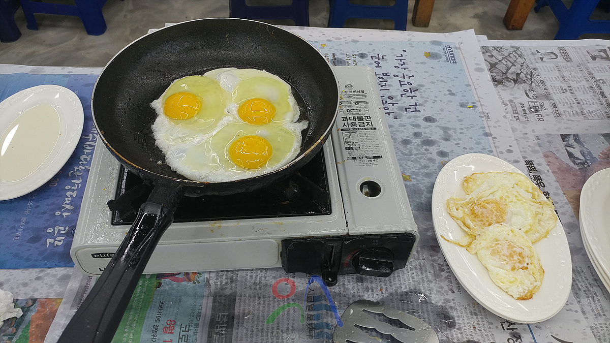 그리고, 직접 요리해야 하지만 계란 후라이가 서비스로 제공되는 식당