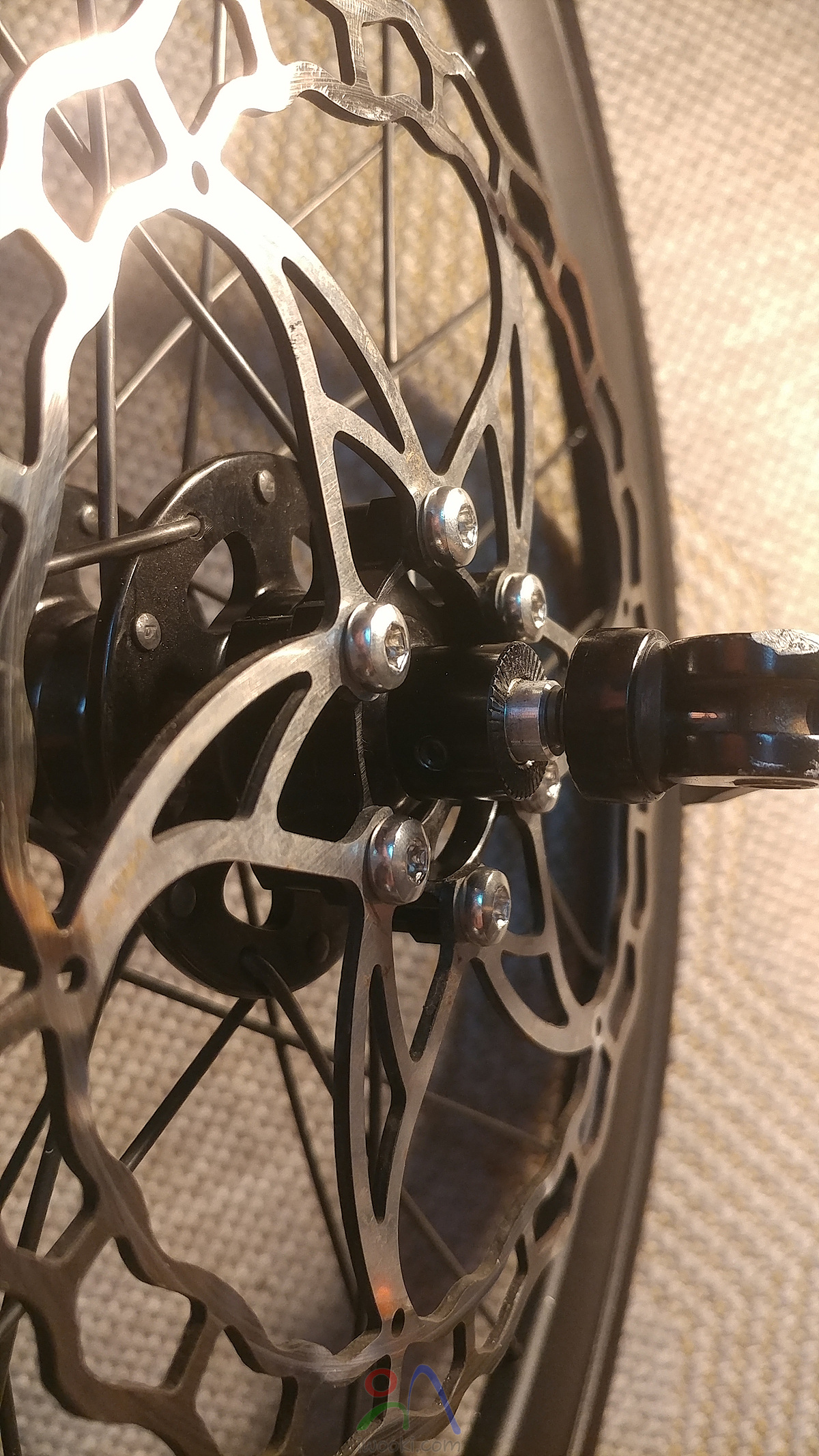 2세대 디스크용 앞휠의 포크와 만나는 부분 축 지름이 9mm 보다 약간 더 크다고 함.