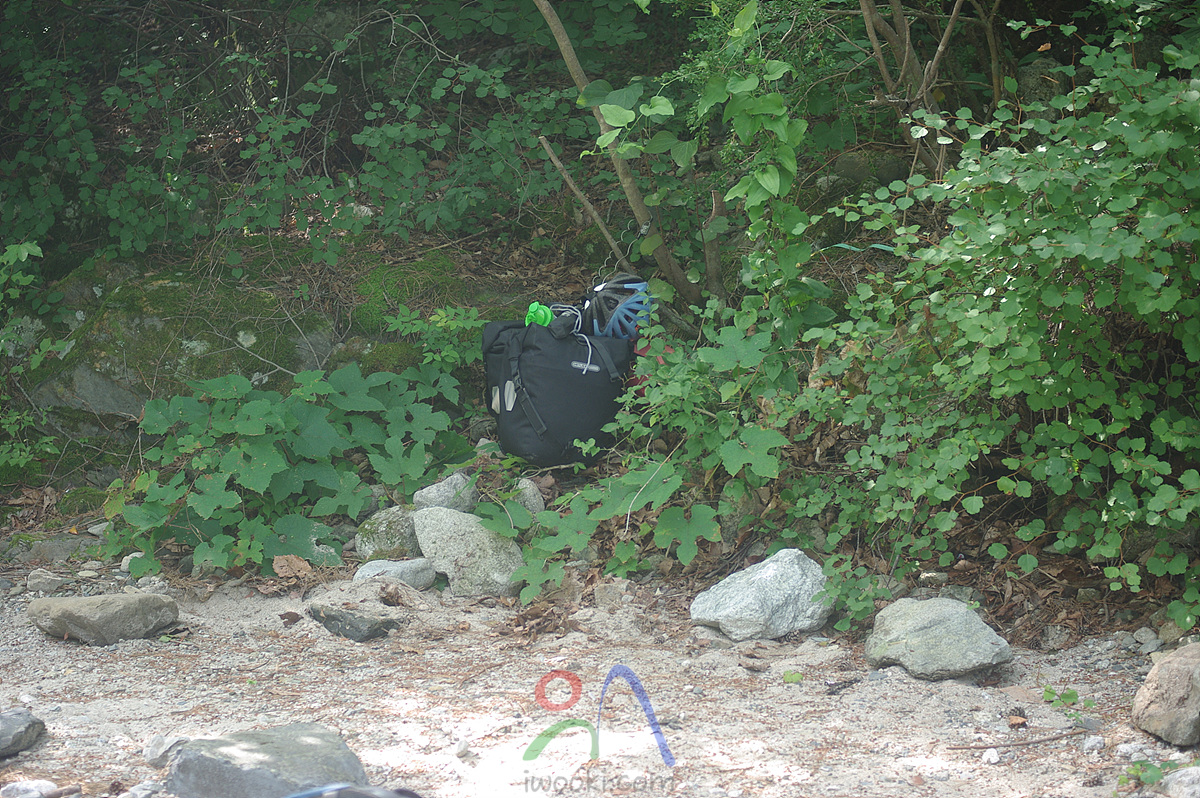 계곡 트레킹이라 자전거와 패니어는 잠시 길가에 보관...