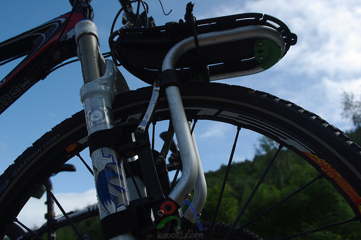 앞 쪽도 포크에 앞짐받이를 설치할 수 있는 아일렛(Eye-let)이 있다면 그냥 짐받이를 볼트로 조여 주면 끝.