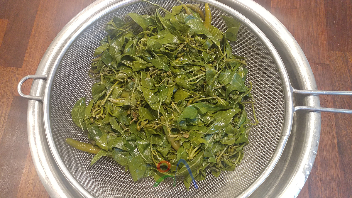 물기빠진 고추잎 위에 양파, 대파, 파 올리고