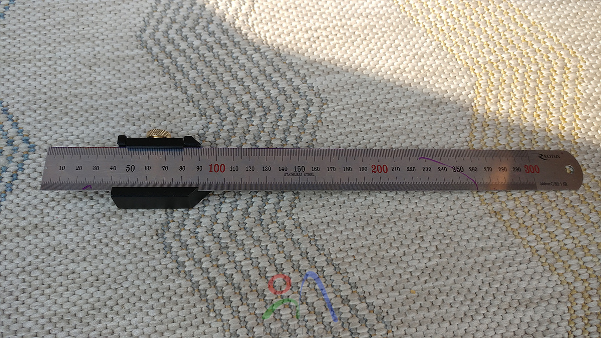 30cm자와 60cm 쇠자에 연결하여 사용하는데 정확하게 잘 마킹됩니다.