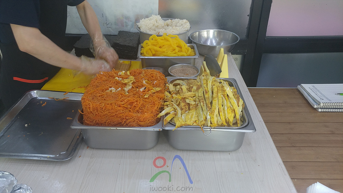 갈 때마다 저렇게 단무지, 당근, 계란 싸놓고 정신없이 만들고 계심