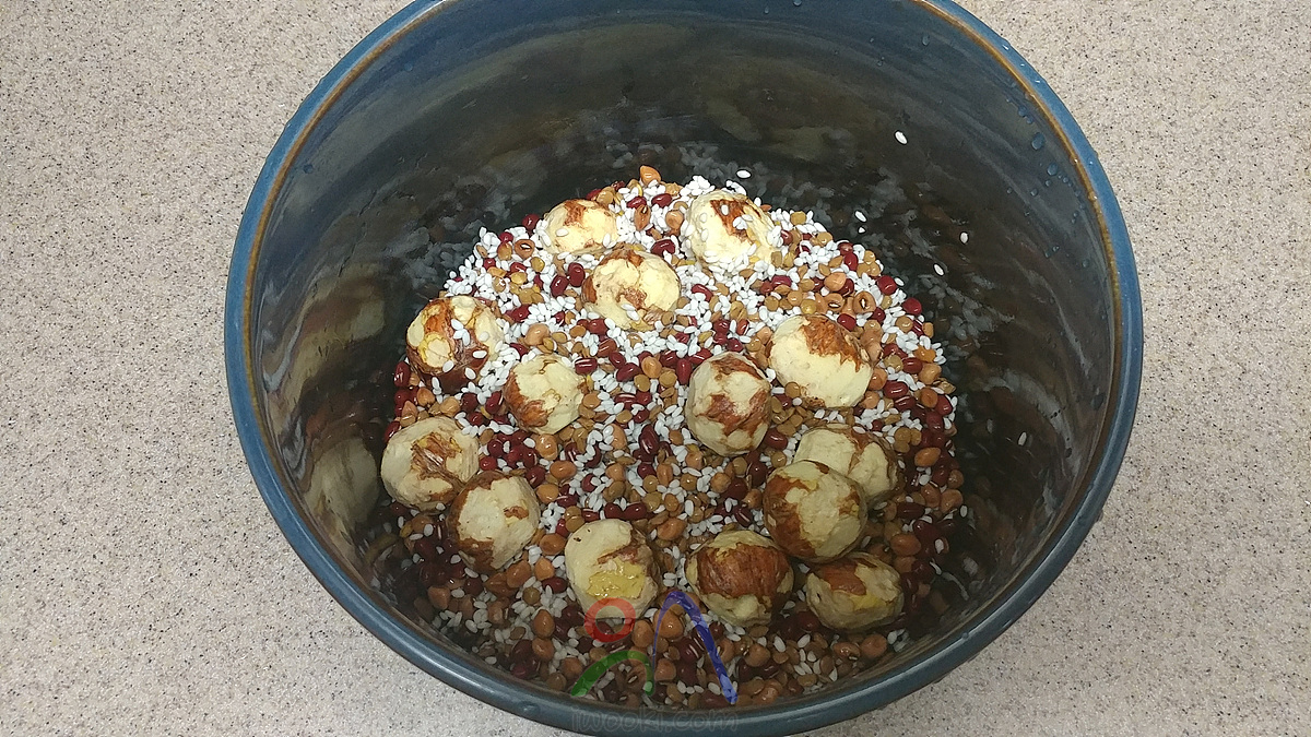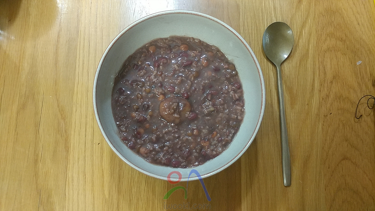 오쿠 설명서대로 끊여주면 되는데. 팥 및 잡곡 200ml 찹쌀 200ml 밤 몇개 설탕 한 큰술 소금 한꼬집 물 1200ml 붓고 약죽으로 끊여주면 끝