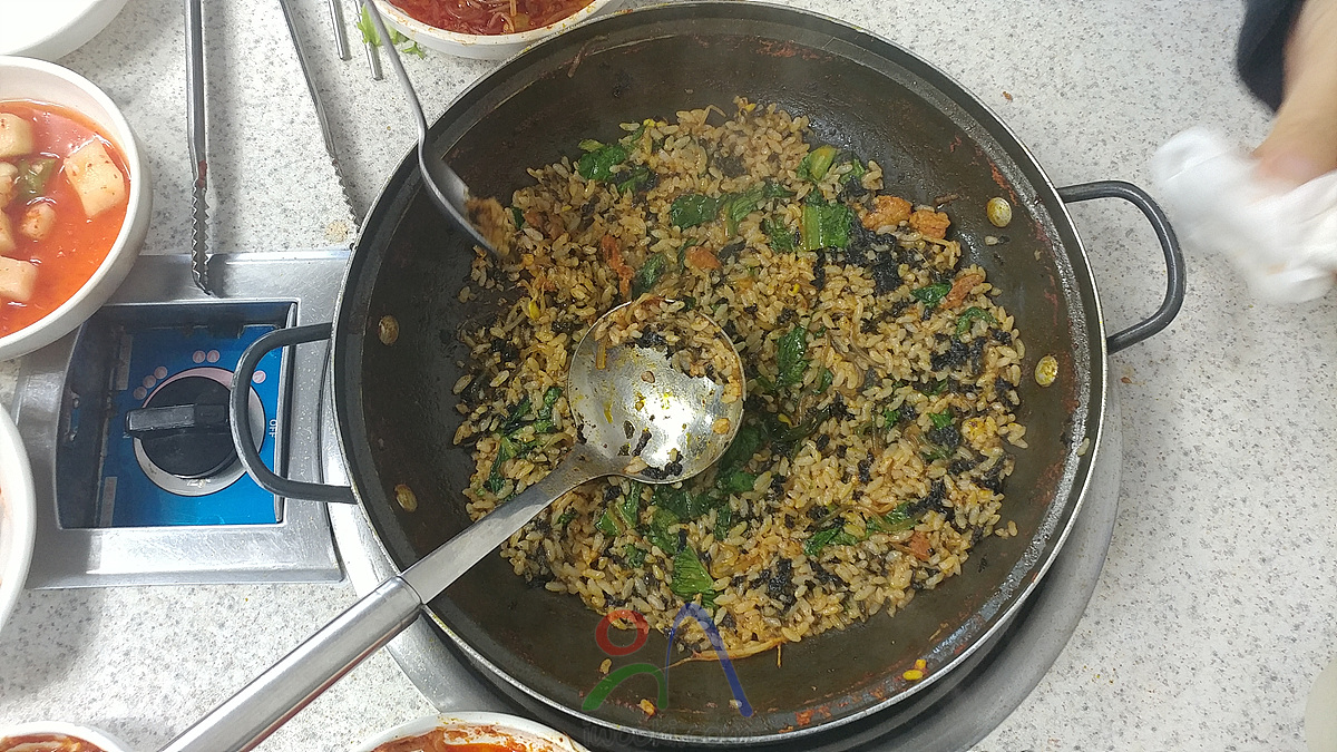 쌀과 각종 견과류를 넣어 돌솥에 진짜 밥을 지어 제공하는 원조집.