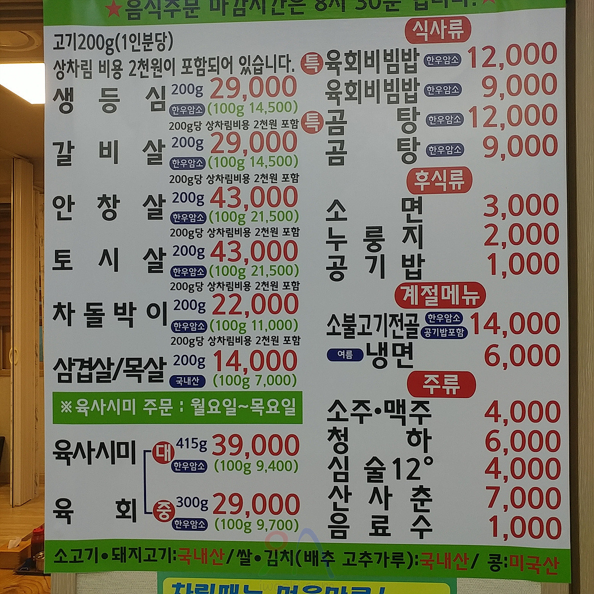(원래는 라면이나 떡사리도 무한 리필이였으나, 음식쓰레기가 너무 많이 나와서 없어짐)