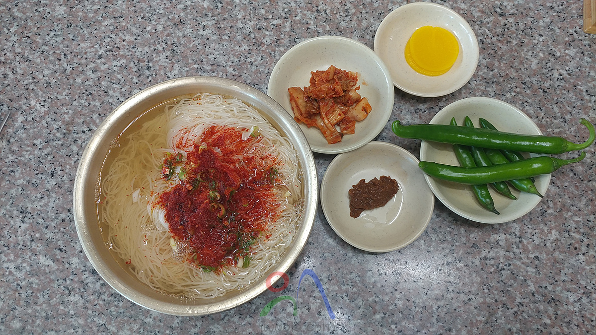 자극적이지 않은 국물에 특이하게 고춧가루를 언져와 참기름이 적당히 조화를 이루어 슴슴하니 개운하고 시원한 맛이 특징인 옛날 국수 맛집입니다.
