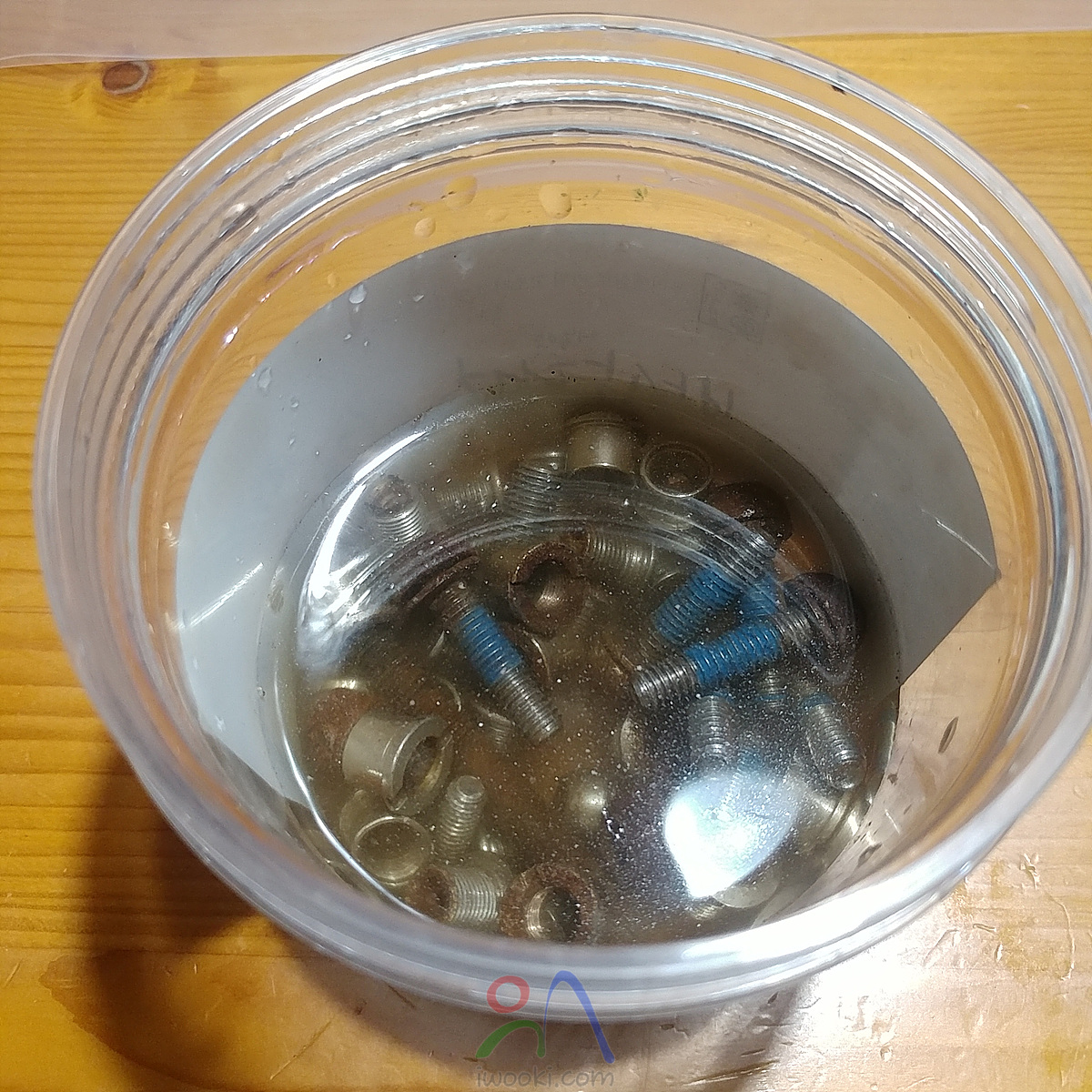 녹쓴 볼트 담그고, 하루 밤 보냄