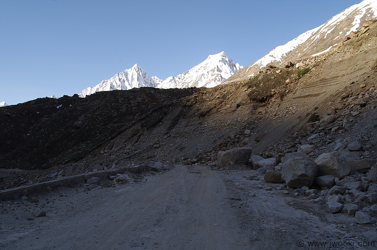 유월인데도 기나긴 겨울동안 쌓인 눈이 아직도 녹아 내리며 도로가 유실된 곳이 많다.