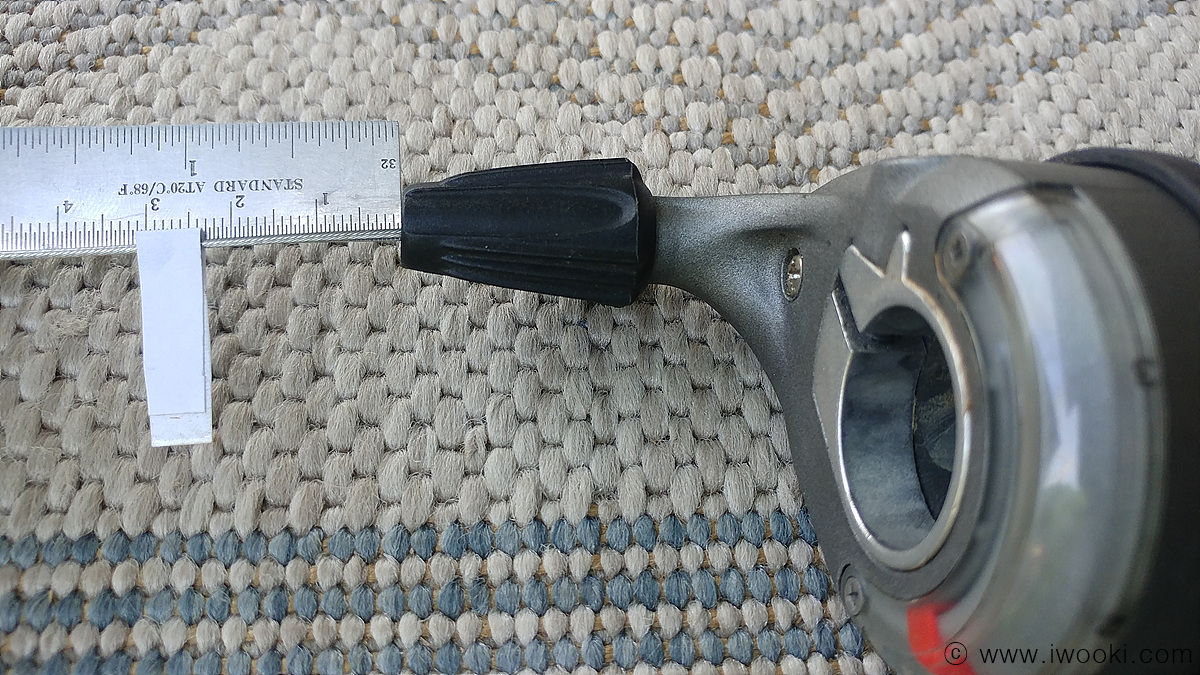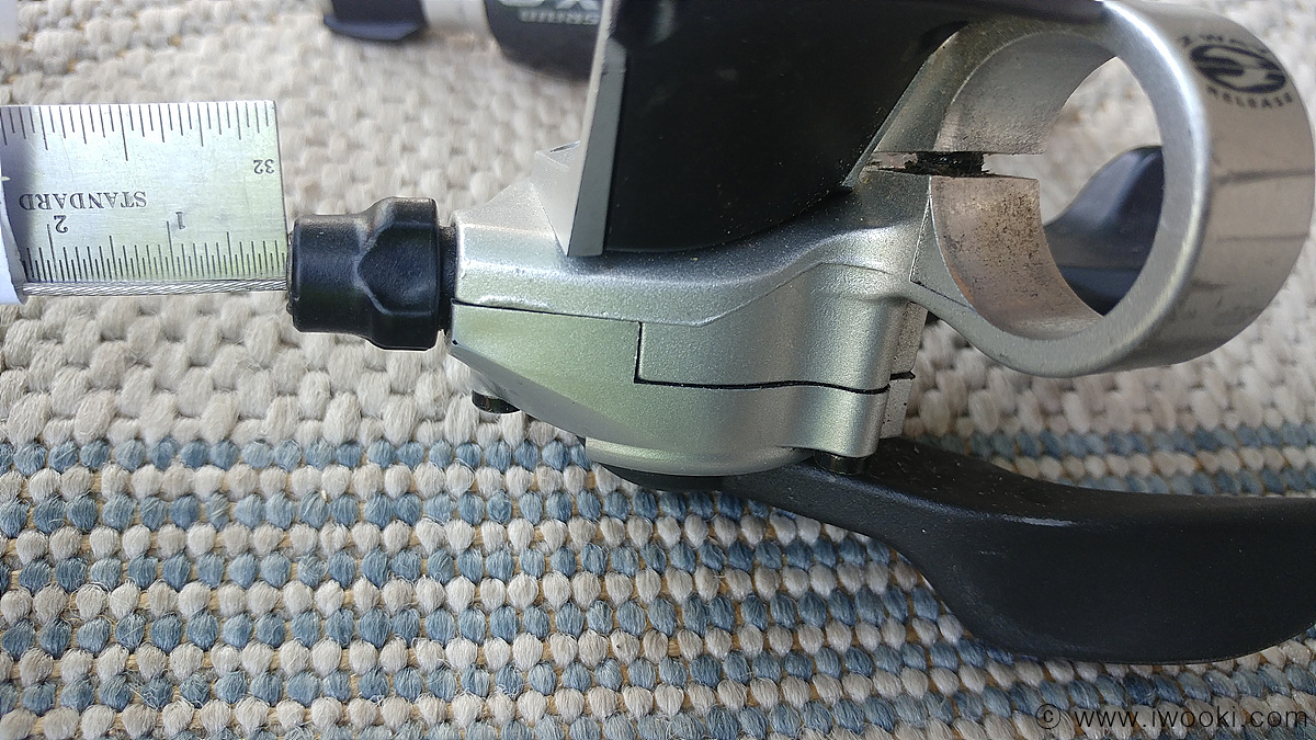 아래 사진 보시면, 시마노 9단 오른쪽 변속기의 1~9단 변속선 케이블 길이변화값과 스램 로켓 앞쪽 그립쉬프터의 1~3단 변속선 케이블 길이변화값이 거의 비슷한 것을 알 수 있습니다.