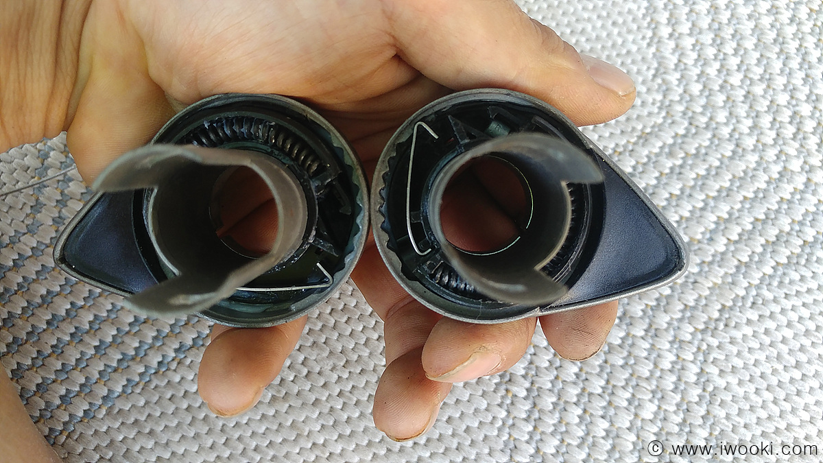 쉬프터를 분해해 보면 오른쪽 그립쉬프터와 마찬가지로 9단의 변속돌기가 있습니다. 즉 9단으로 사용가능하다는 것입니다.