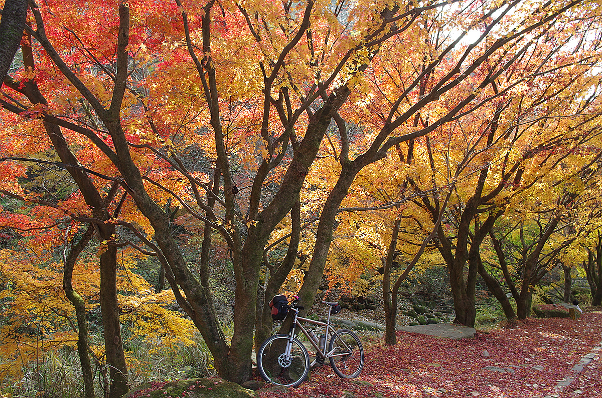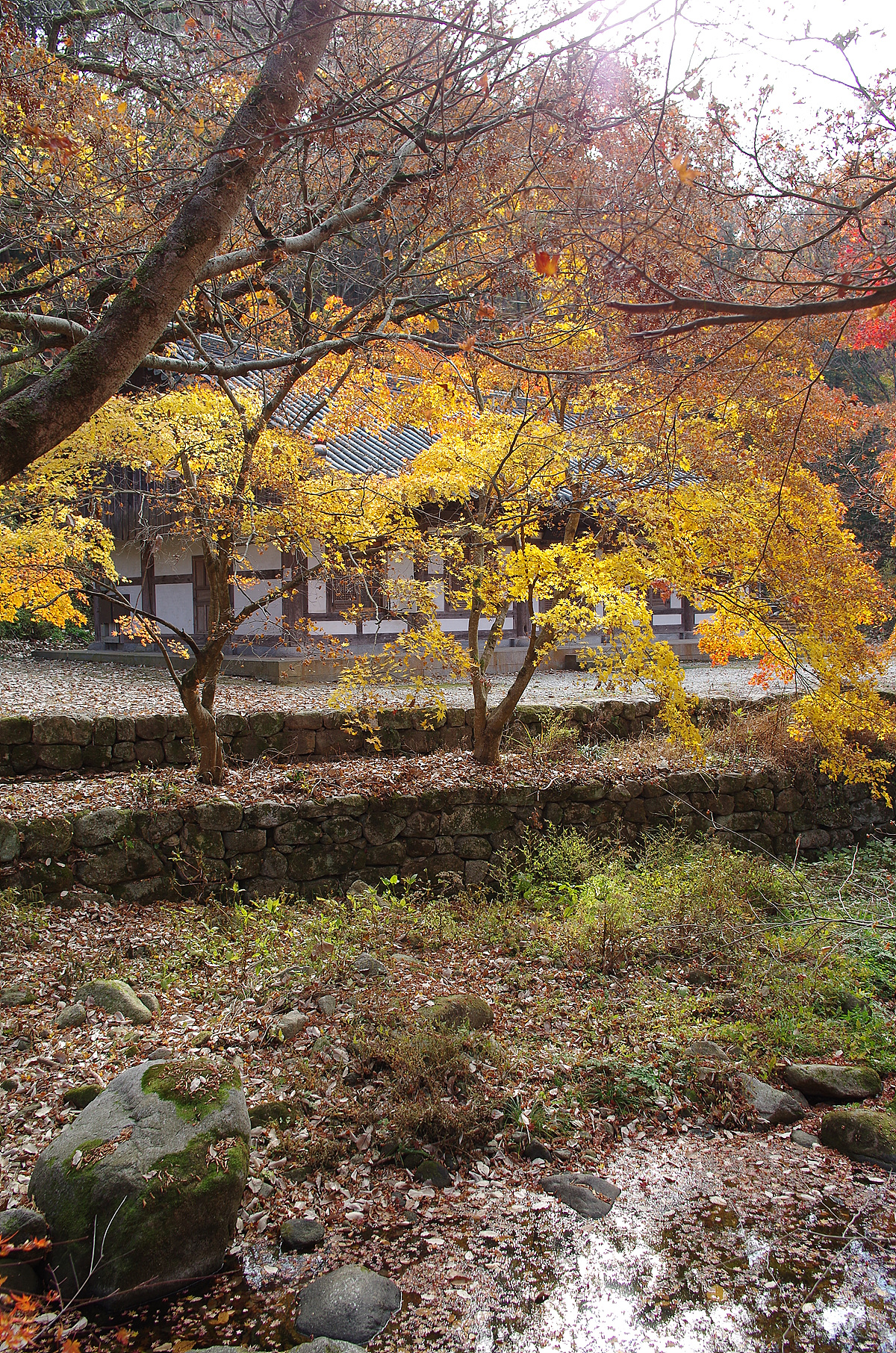 늦은 가을 단풍과 낙엽이 한 데 어울려 아름답지요.