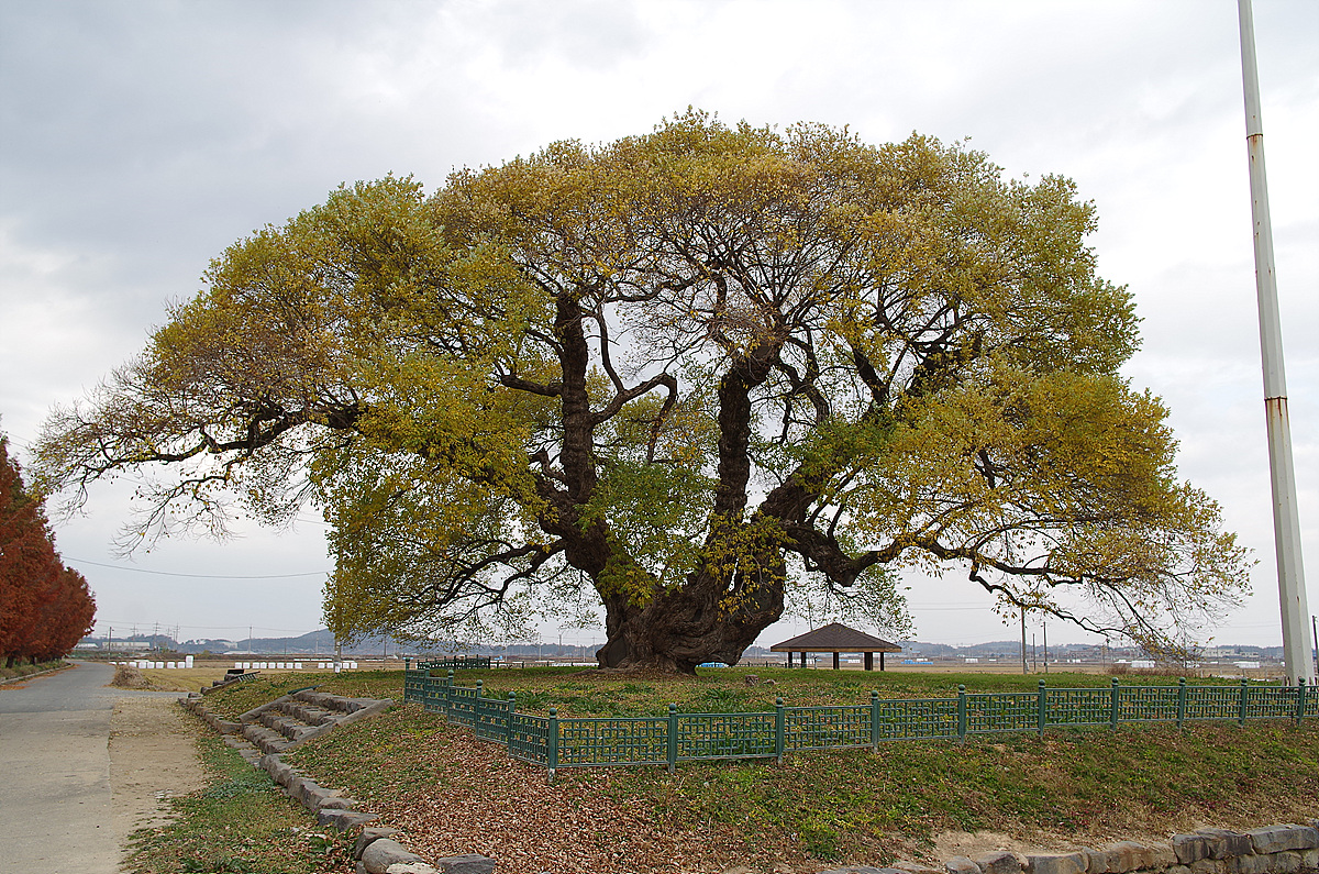 금산사에서 금평저수지를 지나 원평천 물길 따라 오른쪽 뚝방길로 내려오다 보면 뚝방길 아래 쪽에 커다란 나무 한 그루 보일겝니다.