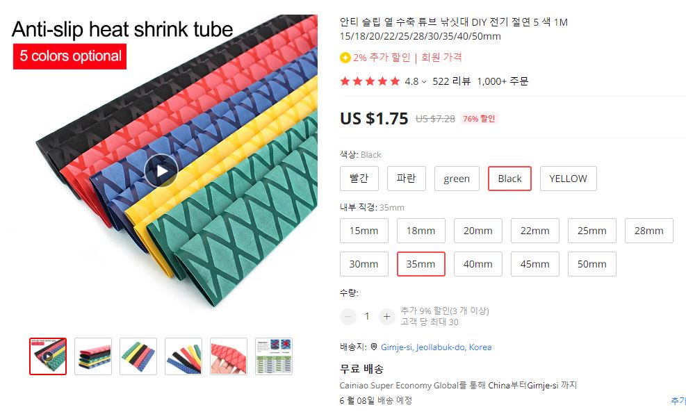 그 때 사용한 것이 슬립방지 열수축튜브(Anti-slip heat shrink tube) 였습니다.