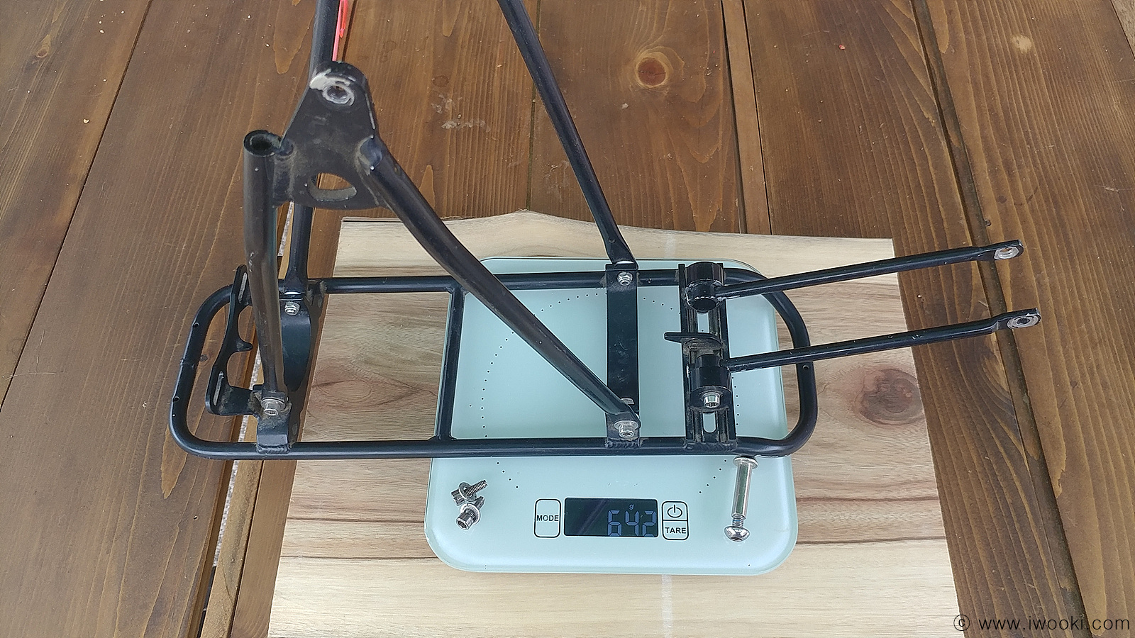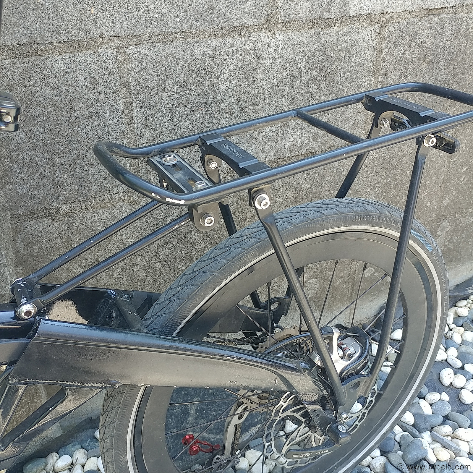 짐받이 앞쪽 튀어 나온부분 자르고, 분리가 되는 V형 지지대를 더 짧은 것으로 자작교체해주면 좀 더 낮아지고, 이지휠 같은 것도 장착가능할 것 같지만..