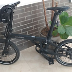 선배랑 식사 약속있어 식당을 들어서는 입구에 떡하니 서있는 접이식 미니벨로 카본 전기자전거 - CARBO나만큼이나 자전거 좋아하는 선배 자전거가 분명하다. 예전에 크라우드펀딩 하는 기사를 본 것 같은데 실제로 보다니...전기자전거인데 무게가 13kg(브롬톤 P6R 무게 수준)정도 밖에 안된다.(물론 더 가벼운 전기 자전거도 많이 있겠지만서도...)체인대신에 벨트가 사용된 것이 일반 미니벨로와 차이나는 특징. 장단이 있으리라...바퀴는 20인치 406사이즈. 배터리는 싯포스트 내장형. 그래서 싯포스트가 저렇게 두껍다.디스크브레이크에, 승차감 좋은 슈발베 빅애플 타이어, 전체적으로 접히는 경첩부위등 군더더기 없이 만듬새가 좋다.일상에서 편하게 사용할 수 있는 합리적인 가격대에 부품구성도 나쁘지 않은 이렇게 ..