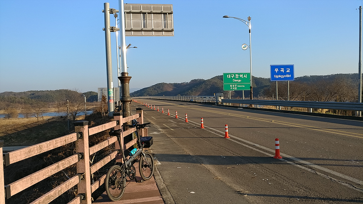 이런 거진 다와서 저기 넘어야할 다리(현풍천교 아래 다리)가 한 참 공사중이네요.