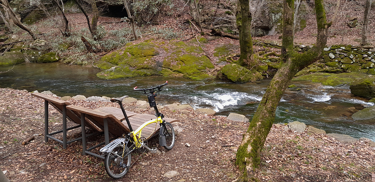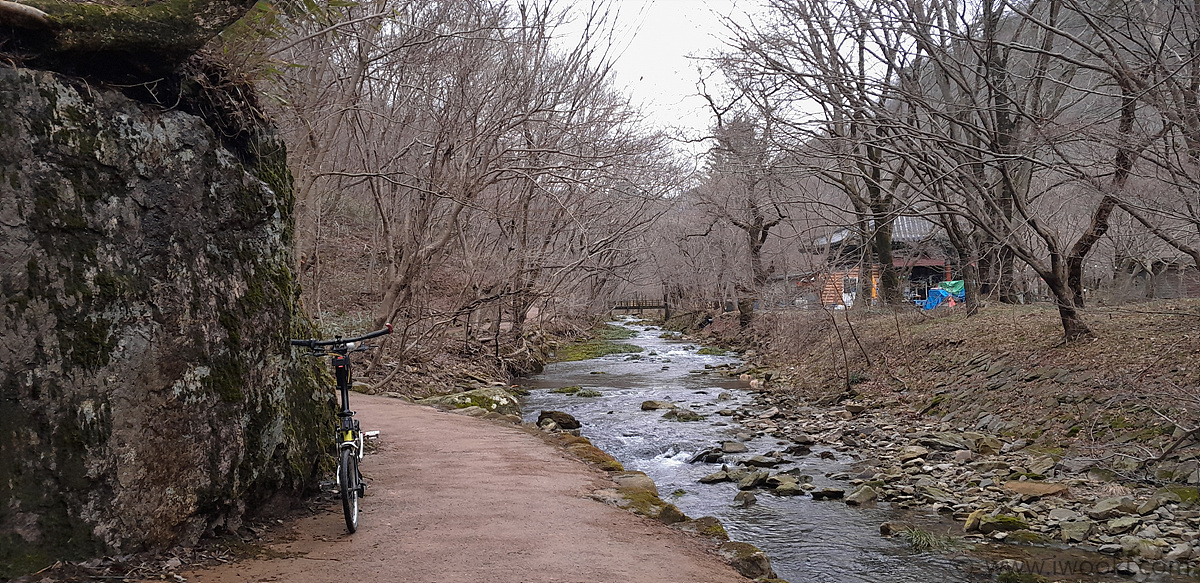 아직 벗꽃이 덜 피어 관광객이 하나도 없다보니, 원적암 앞까지 브롬톤으로 계곡따라 가는데 참으로 한적하고 길이 아름답더군요.