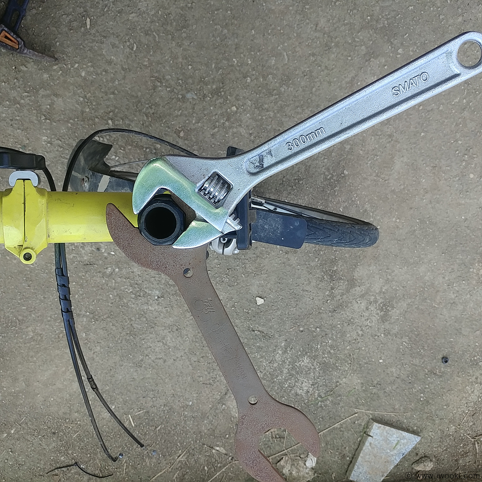 핸들포스트를 분해하지 않고 헤드셋을 조여주기 위해서는 36mm 얇은 렌치 2개가 필요합니다.