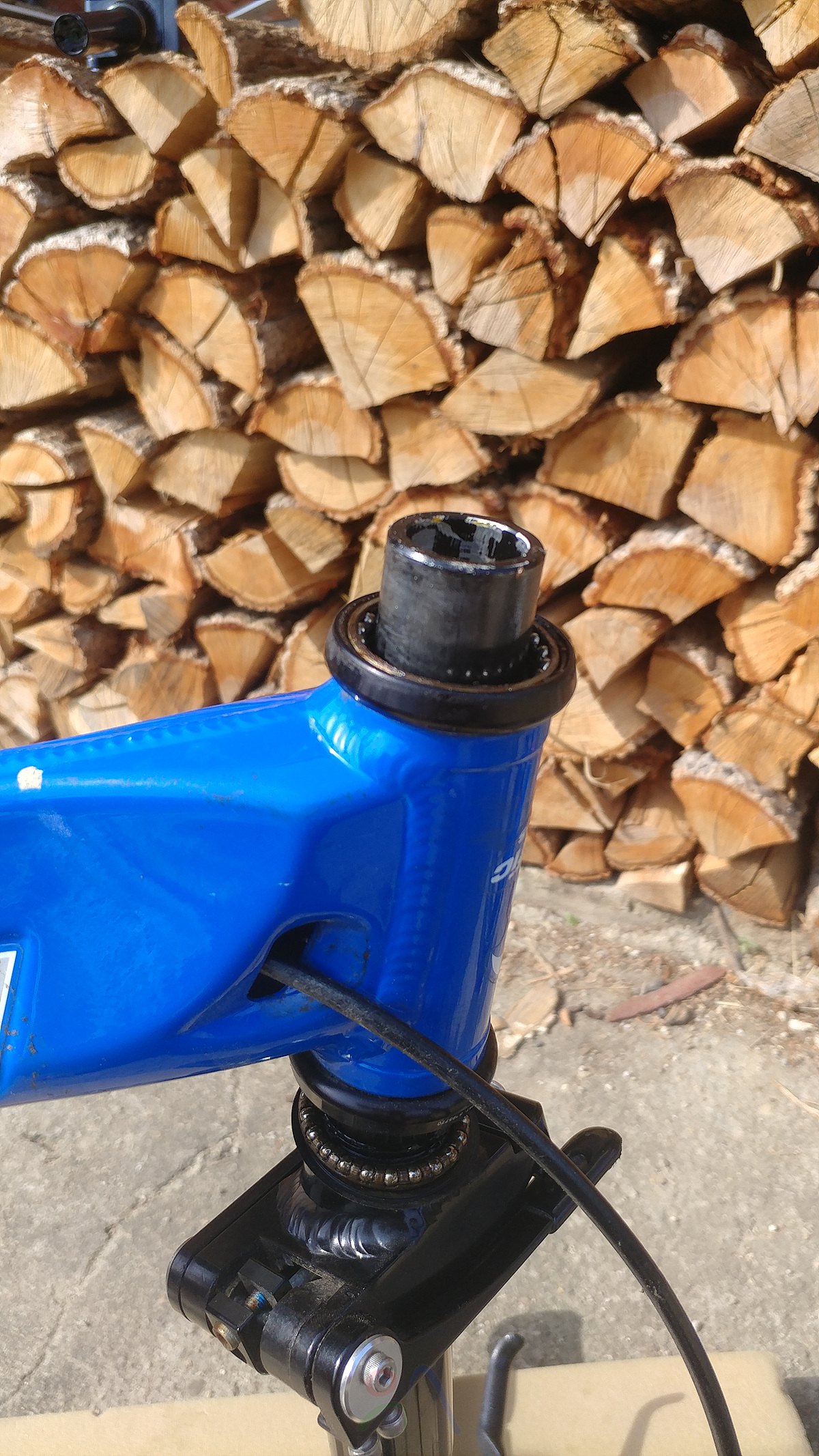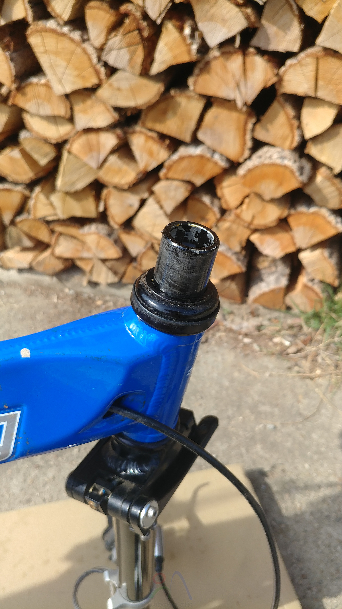 헤드셋캡을 먼저 결합 후 포크와 핸들포스트 연결 볼트를 조여 주기