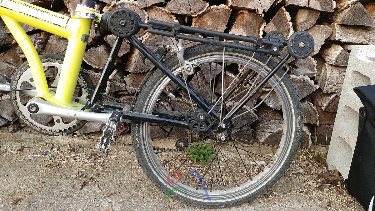 브롬톤 리어랙의 사이드에 어댑터(E175)를 설치했는데, 위 ANTT SLENDER와는 달리 페달링할 때 간섭이 생김, 포기