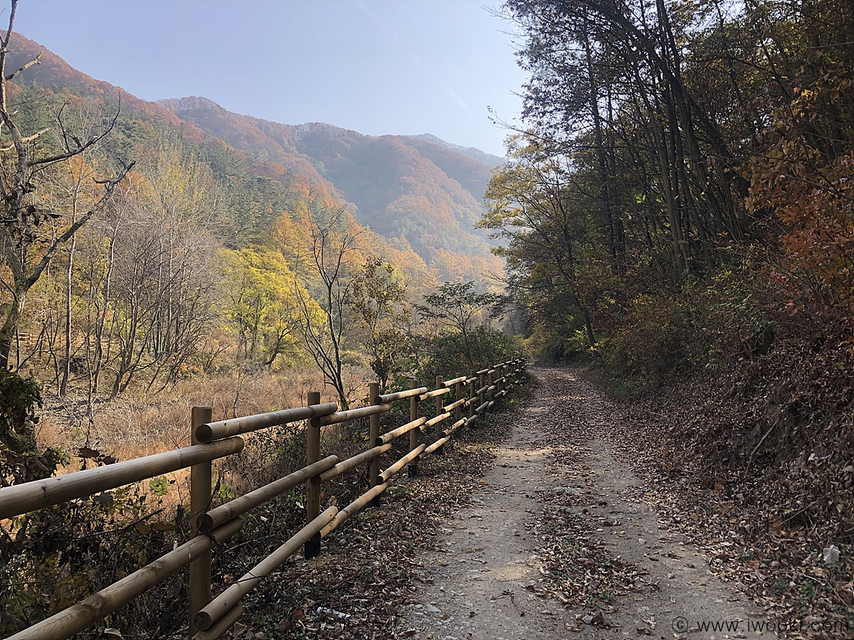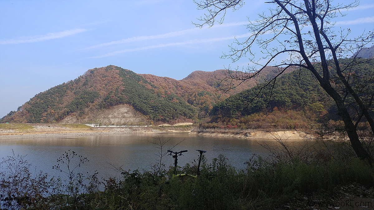 저수지 건너편에 무슨 임도 비스무레 한 길이 보이길래
