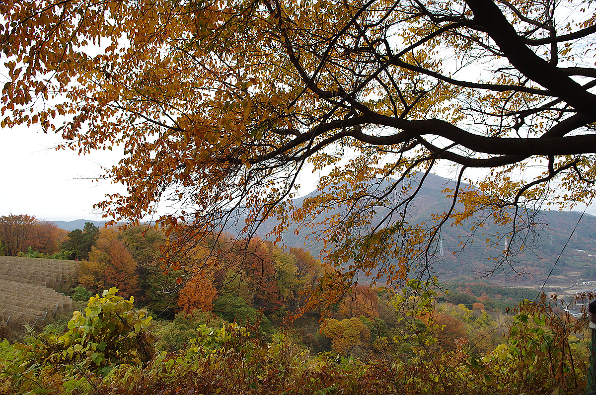 늦은 가을 단풍과 낙엽이 한 데 어울려 아름답지요.