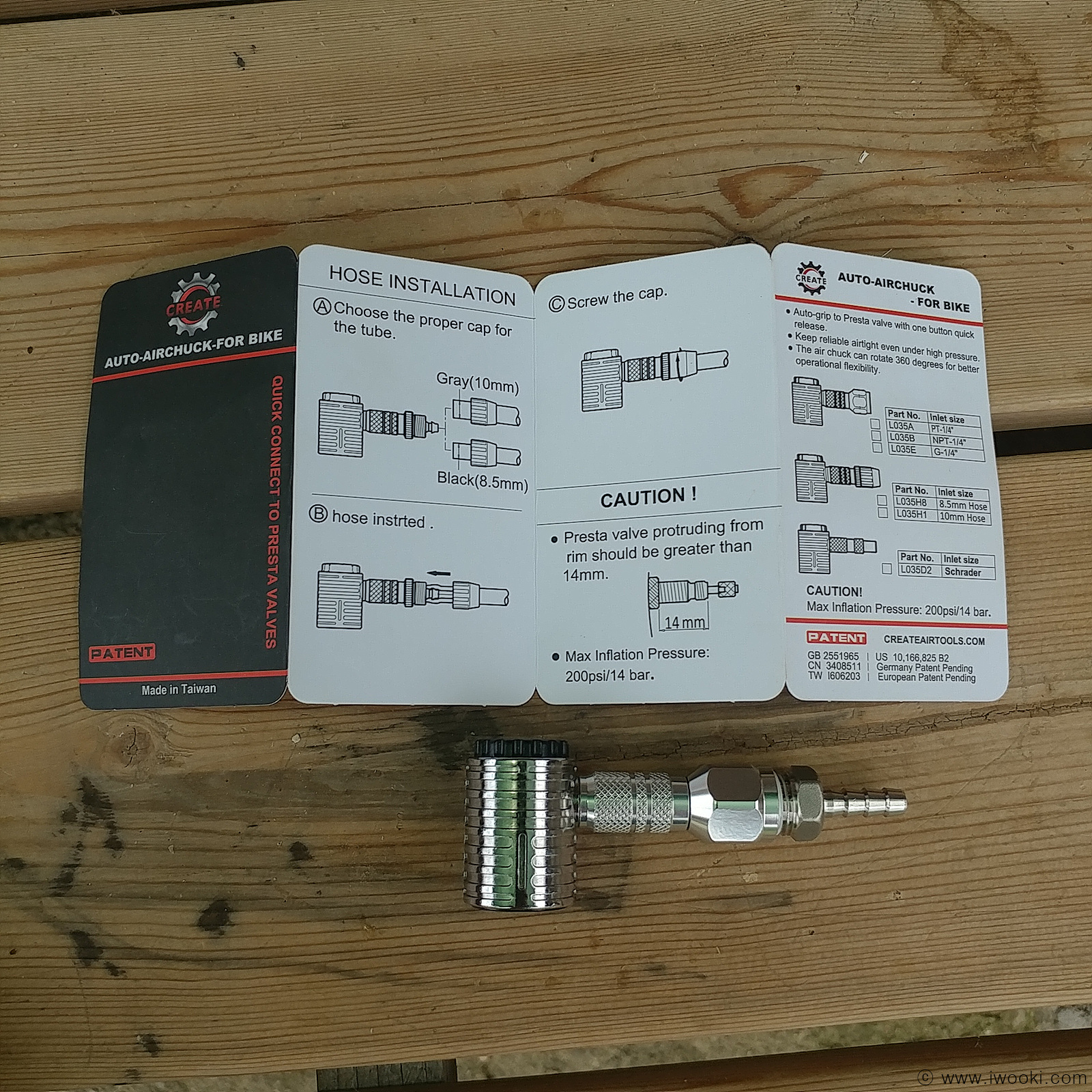 프레스타 방식 밸브에 그냥 끼우기만 하면 헤드의 뒷부분이 후퇴하면서 자동으로 잠금이 됩니다.엄청 편하고 빠릅니다.